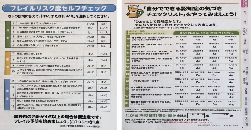 “体力” ”栄養 ” ”社会”に分け計15問。チェック結果点数を出しながら、ワイワイガヤガヤ。