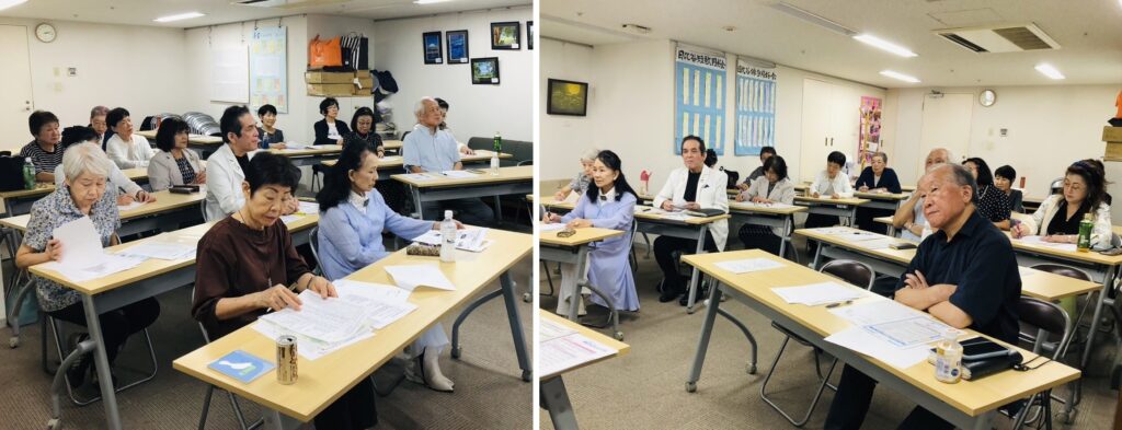 ここからは角度を変えて所属されている北区民生委員児童委員協議会高齢福祉部会での経験やN社時代の同期103名の現在模様から感じるフレイル予防(後述)・介護予防について講師とともに一緒に考えてみよう!との時間。参加型で進められていきました。