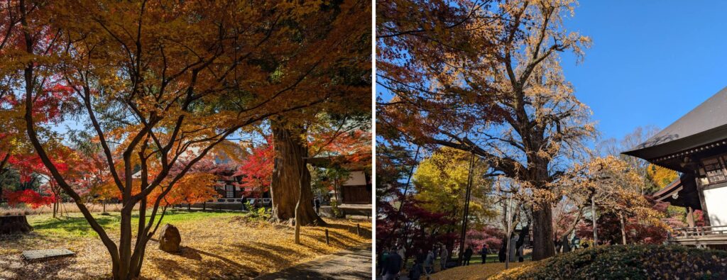 「九品仏」の名前で親しまれている「淨真寺」は、都内でも紅葉の名所で特にモミジが多い所として有名です。境内にはイチョウ・カヤ・トチ・高野マキ・菩提樹の古木があります。カヤとイチョウの中には天然記念物に指定されている大木(樹齢700年)もあります。思う存分紅葉をお楽しみ頂けます。